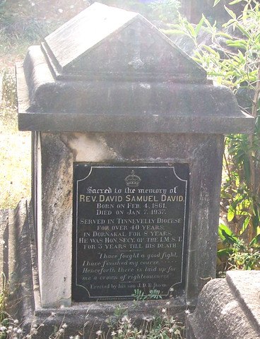 Show Bio Father Go to profile page Rev. Joseph David (1835 - 1922) Mother Go to profile page Pakkiam Ammal David (1840 - 1925) Go to profile page D S David (1861 - 1937) Spouse Go to profile page Annamuthammal David (1867 - 1930) Daughter Go to profile page Inbammal Samuel (1886 - 1957)